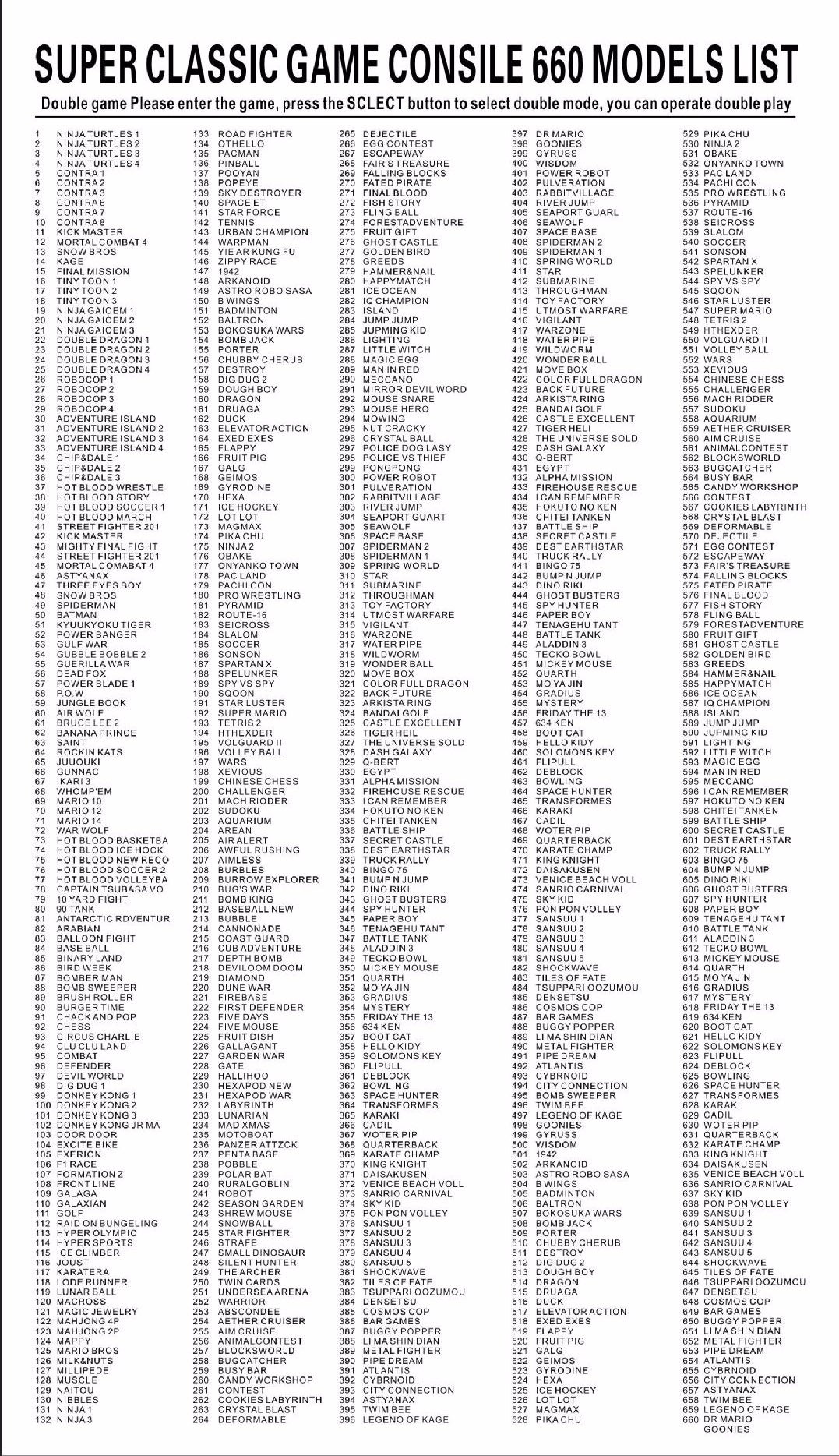 • 1x Super Mini Game Console with 660/821games installed