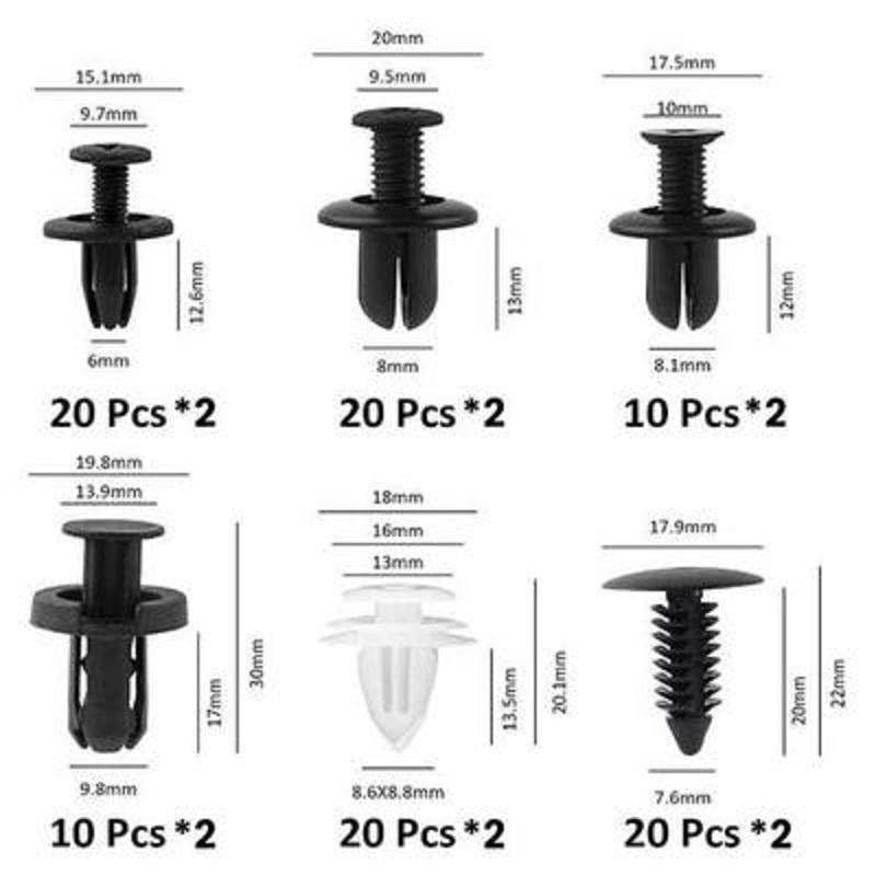 Multiple Use: Car fender clips that widely used for door trim, radiator shield yoke, fender, bumper, side skirt, grille, engine cover and splash shield retainers rivet clips for exact replacement of worn, old, and broken retainers.